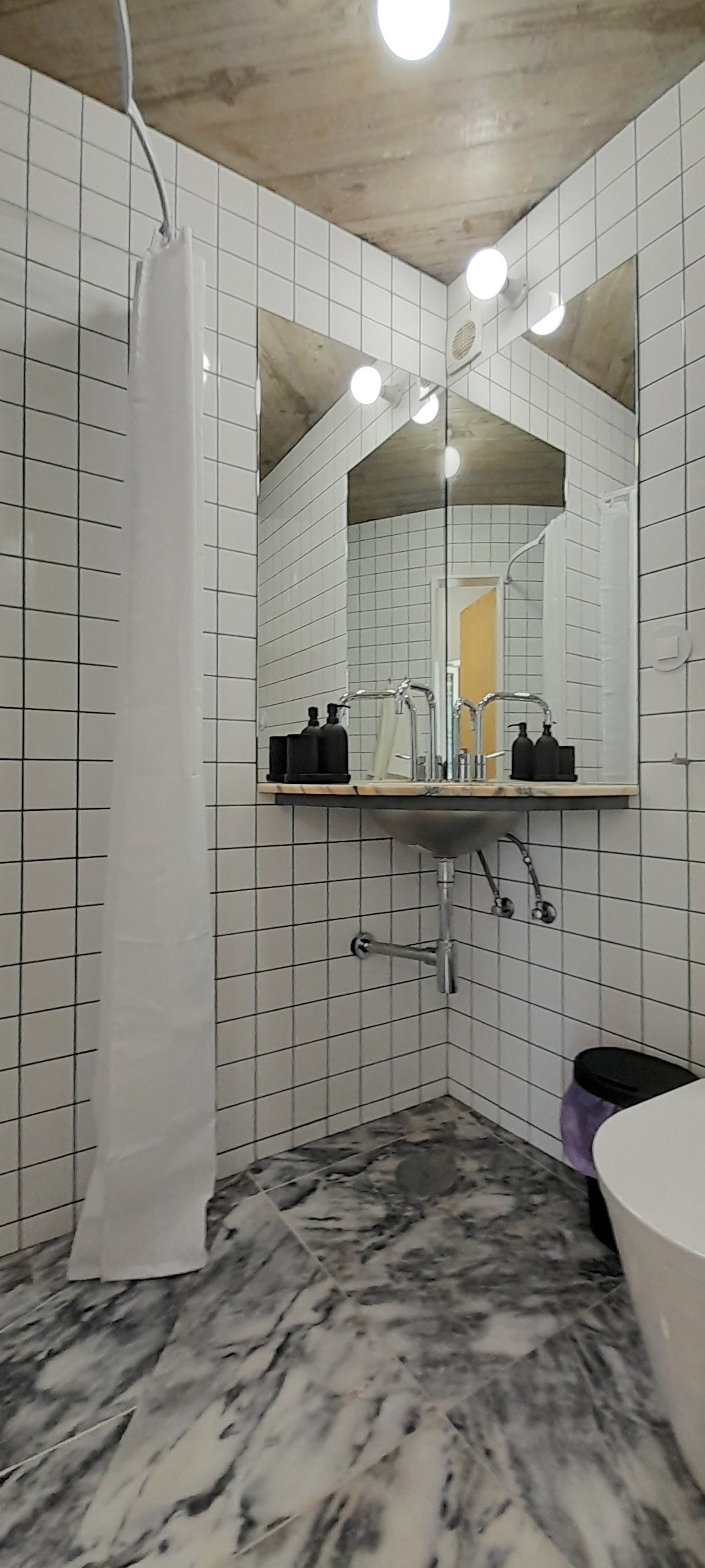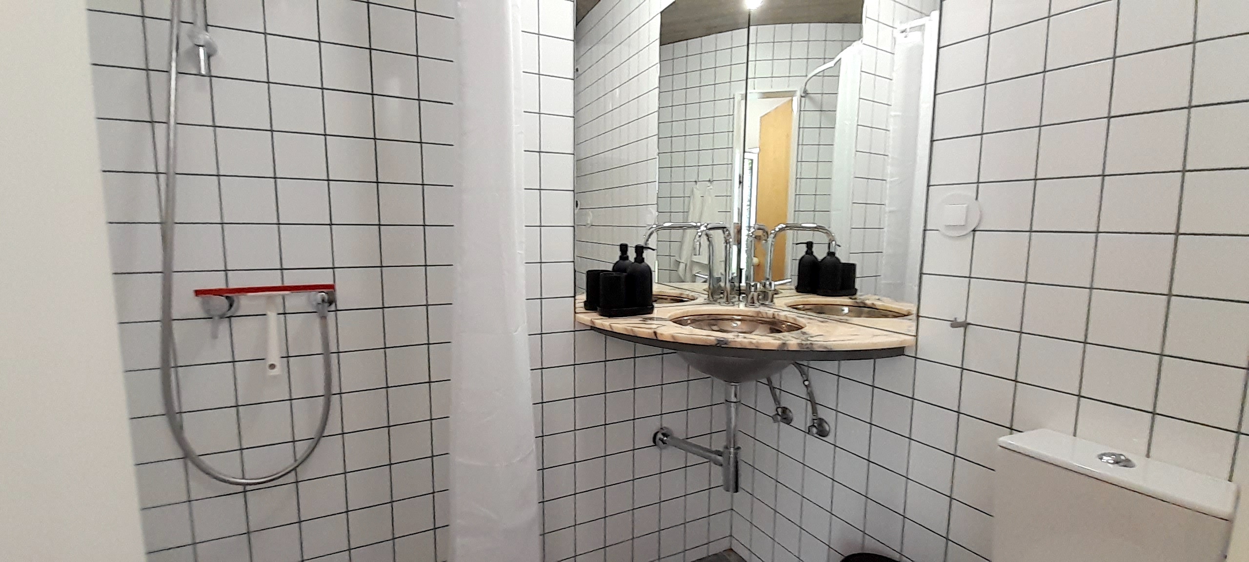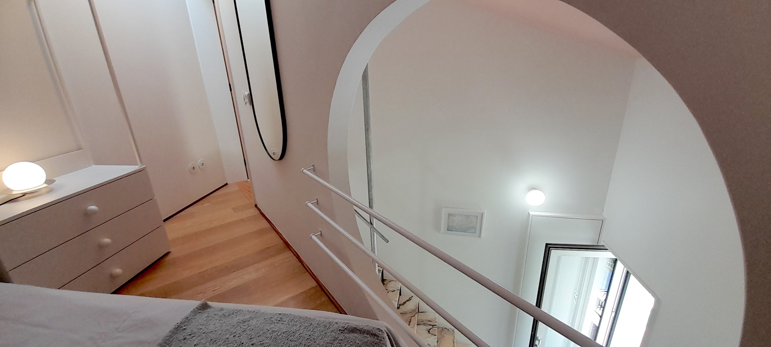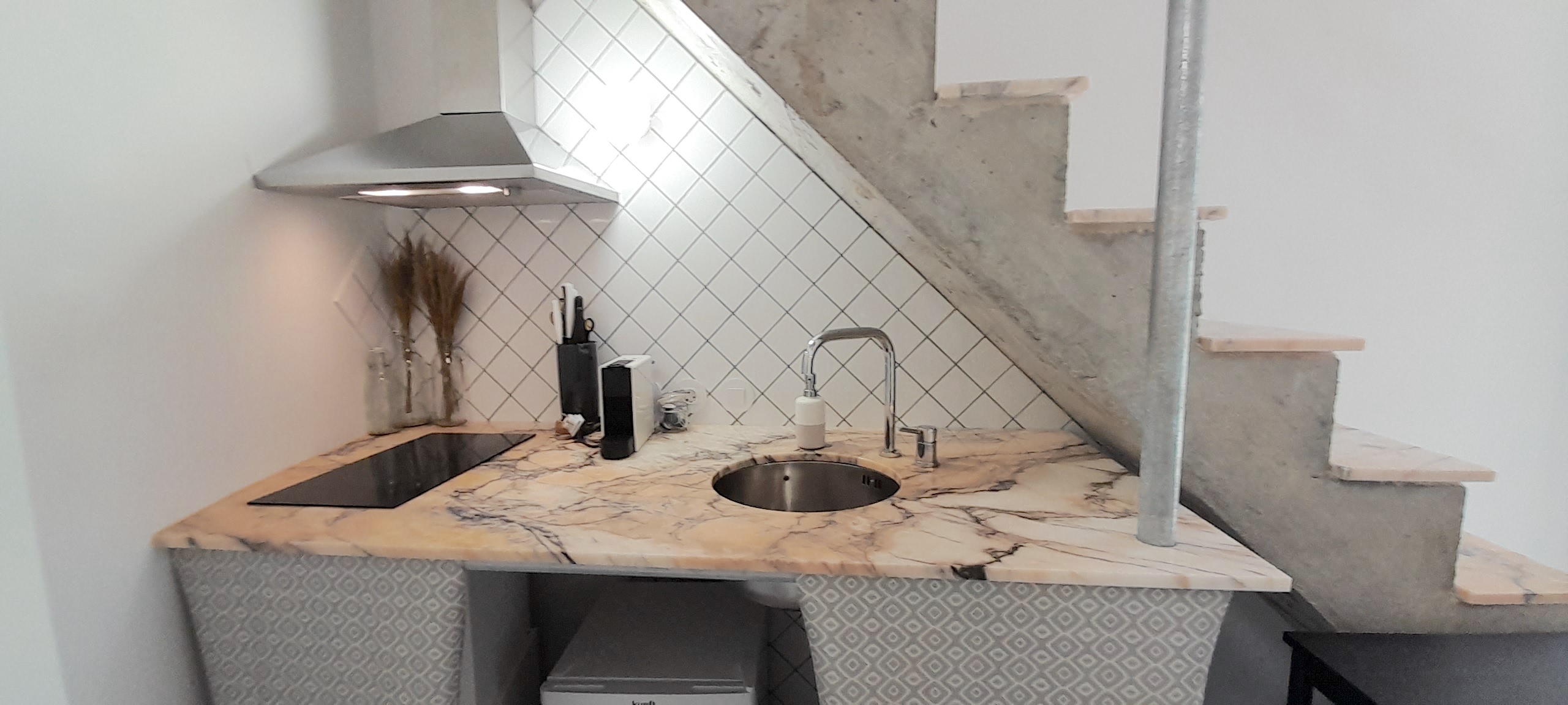 It’s a small house (30 m2) with two floors, high ceilings and an open-plan feel. It’s a very cool space!