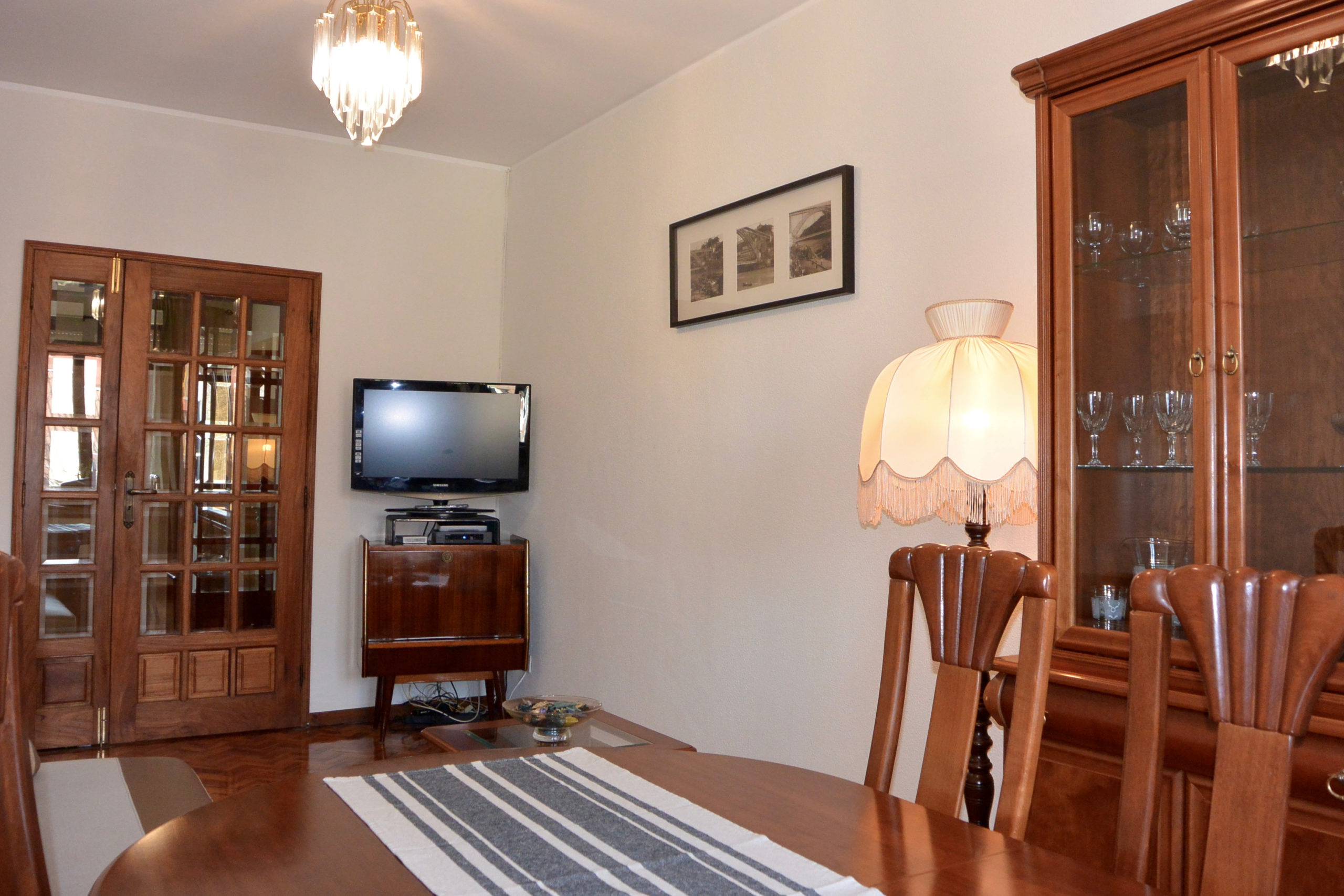 CASA GAMA is a traditional portuguese family apartment that takes us back in time to the seventies of last century. Good wood cupboards and wardrobes, solid beds and the traditional hardwood floor. There is one full bathroom with bath tube and shower and one toilet room. The kitchen is equipped with coffee machine, water boiler, microwave; there are dishes, cups, glasses; kitchen utensils, pots and pans. The apartment is on the fourth floor facing east and west, you can even see the river and the sea. The building has a lift, but there are some stairs from the lift to the apartment, and also from the street to the building entrance.