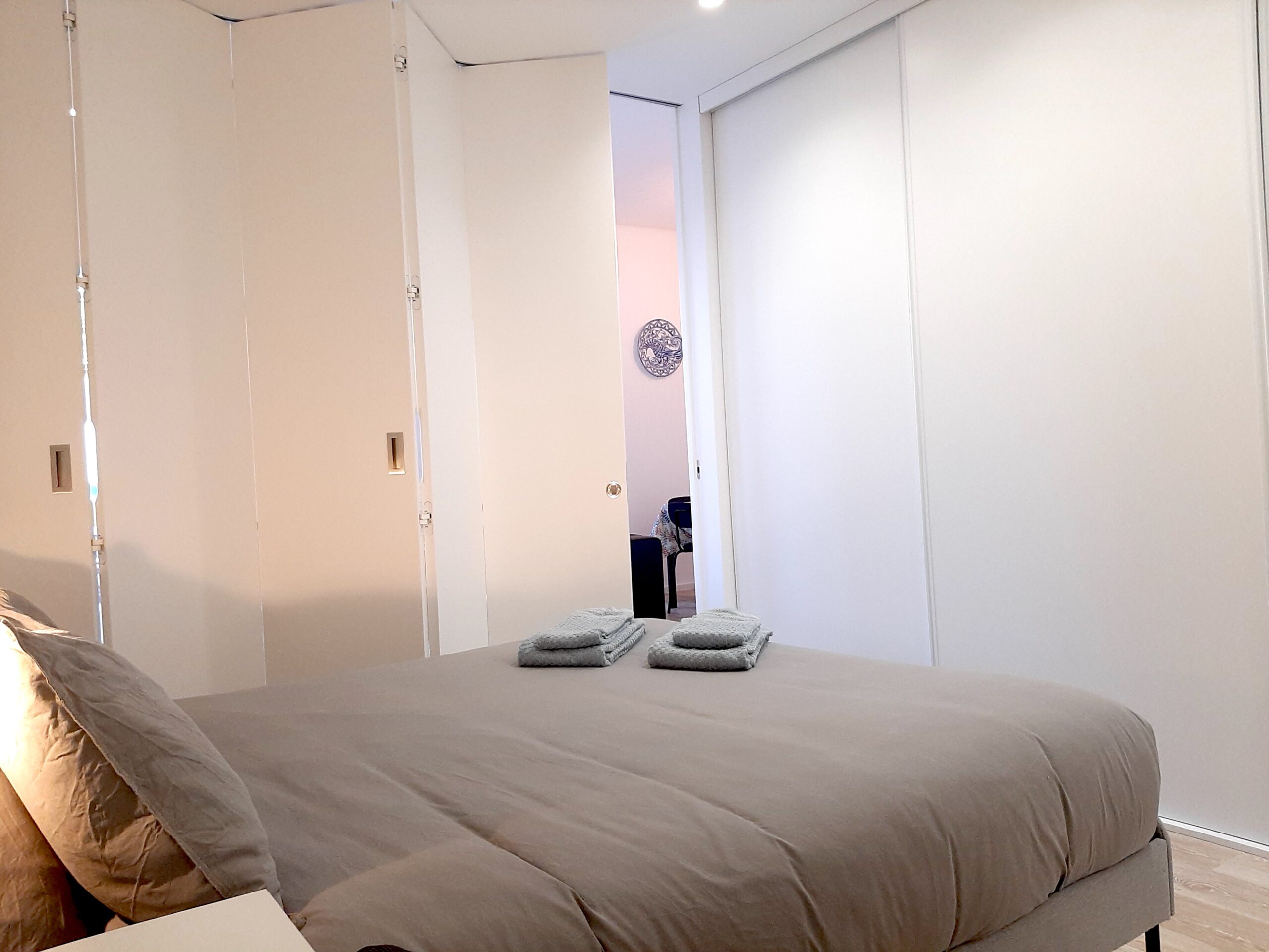 A charming two-bedroom flat (one of the bedrooms is interior); both bedrooms are en-suite and have built-in wardrobes. There is also a storage room with a washing machine and tumble dryer.